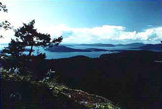 San Juan Islands and Avalanche Lillies from Mt. Erie, Fidalgo Island